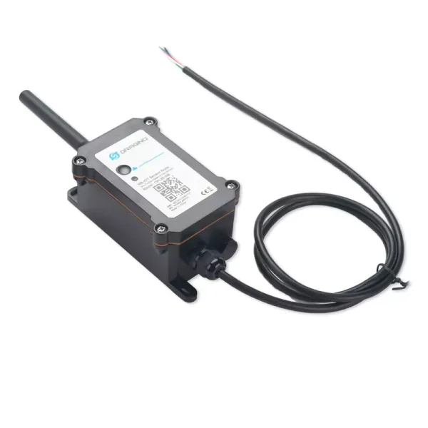 NB-IoT sensor for dry contacts (volt-free contact inputs). Tracks open/close status, open duration, and event counts, then uploads via NB-IoT. Includes open alarm, datalogging, BLE configuration, OTA updates, and an IP67 enclosure.