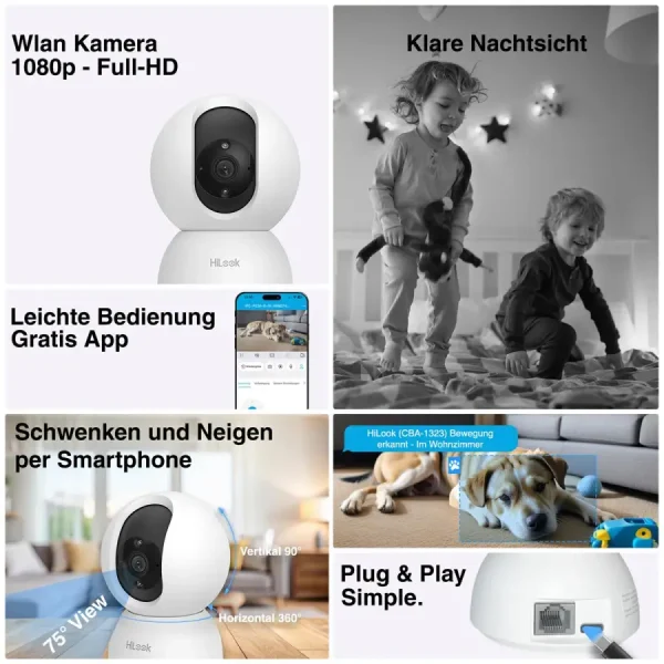 The HiLook IPC-P220-D/W in the 4 mm version is a compact indoor PT network camera for rooms where a fixed camera view is not enough. It is used in living spaces, small offices, reception areas, hallways, checkout zones, back rooms, and internal access points where the viewing direction may need adjustment and Wi-Fi setup is preferred.