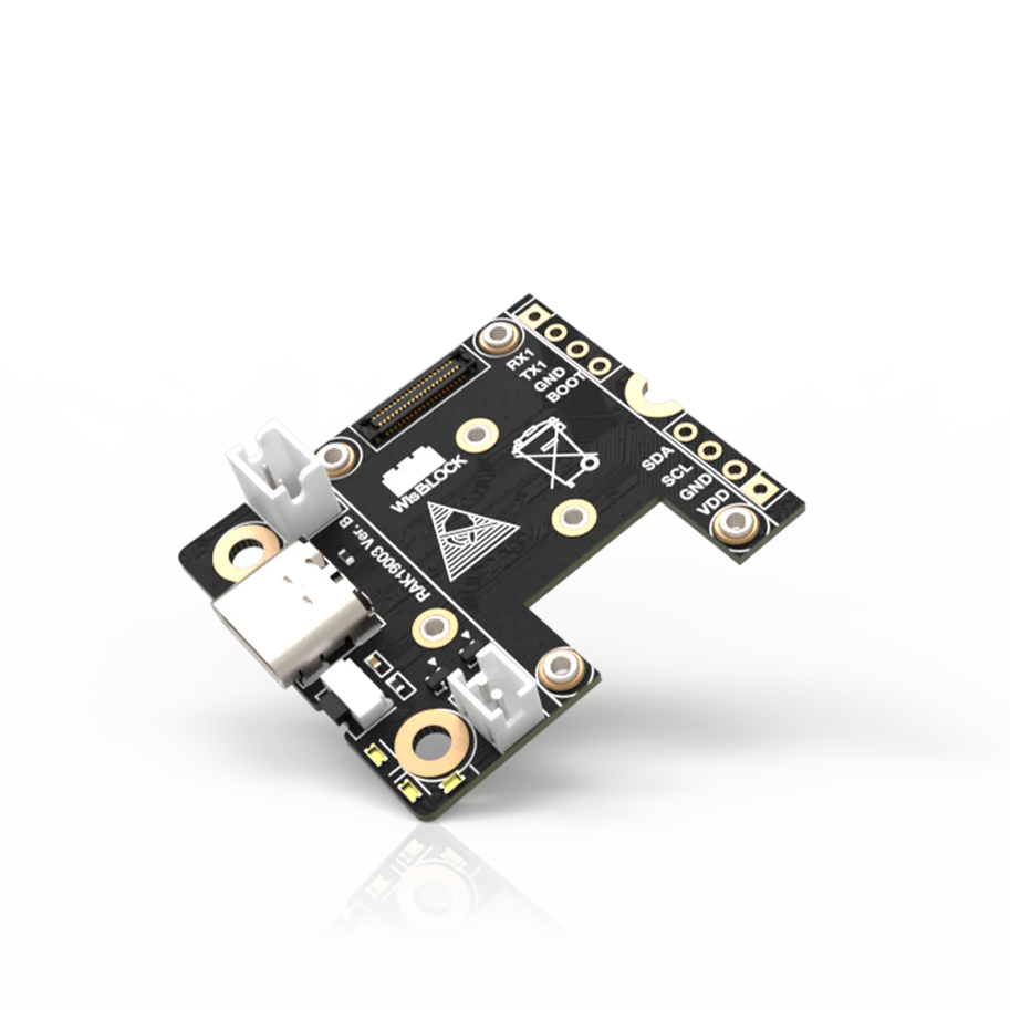 Compared to simpler carrier boards, RAK19001 is built for expansion: it includes two IO slots for larger modules and six sensor slots (A–F) for WisBlock add-ons. For real development workflows—bring-up, debugging, and iterative integration—it also exposes the key WisBlock Core I/O through 2.54 mm headers, giving you straightforward access to common buses such as I2C, SPI, UART, and USB, plus additional GPIO for custom wiring or third-party circuitry.