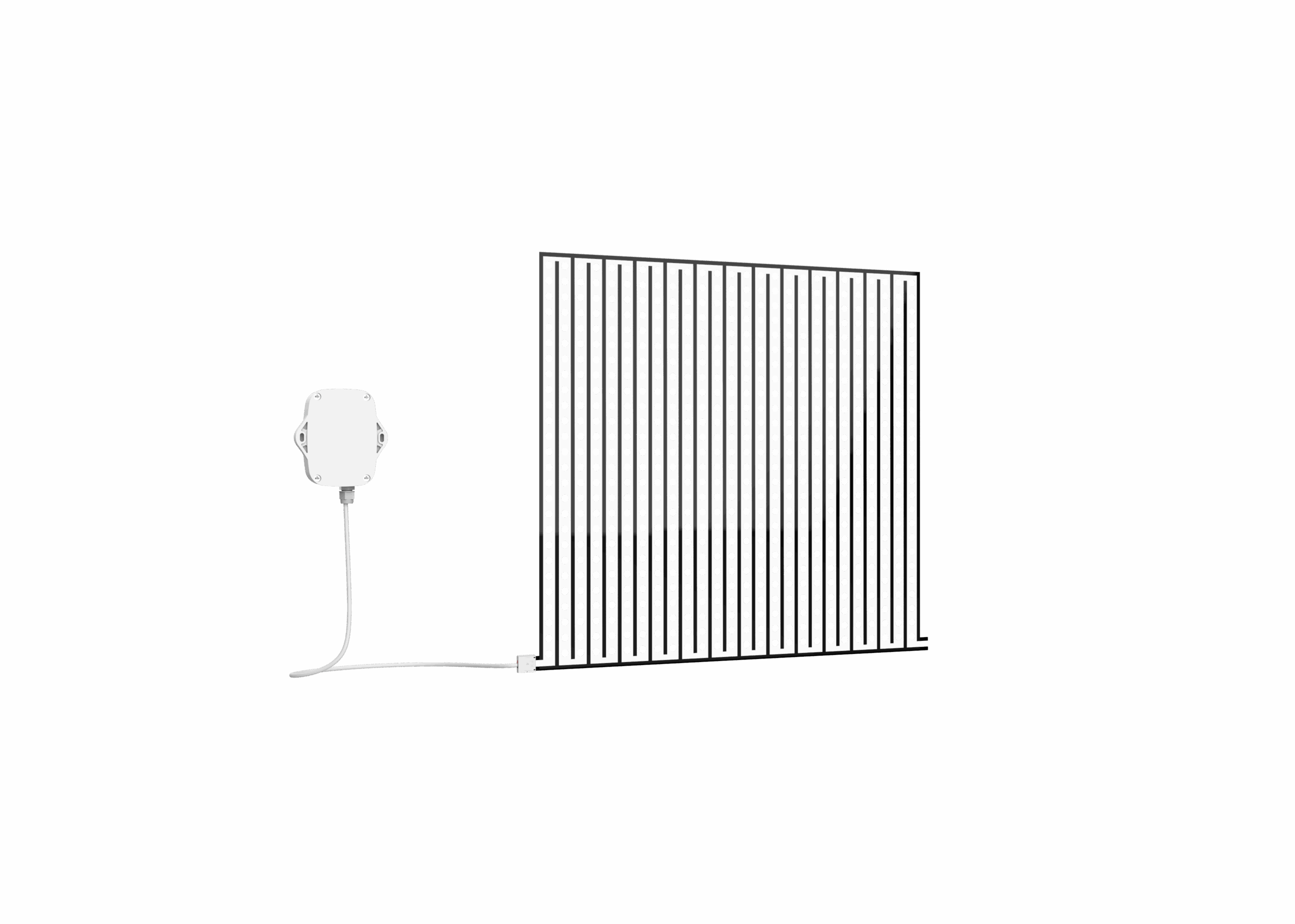Die Sensormembran kann vertikal zugeschnitten werden, um sie an spezifische Installationsbereiche anzupassen. Dadurch eignet sich der Sensor ideal für den Einsatz unter Waschmaschinen, Kühlschränken, Serverracks, in Technikräumen, unter Doppelböden oder in gewerblichen Immobilien.