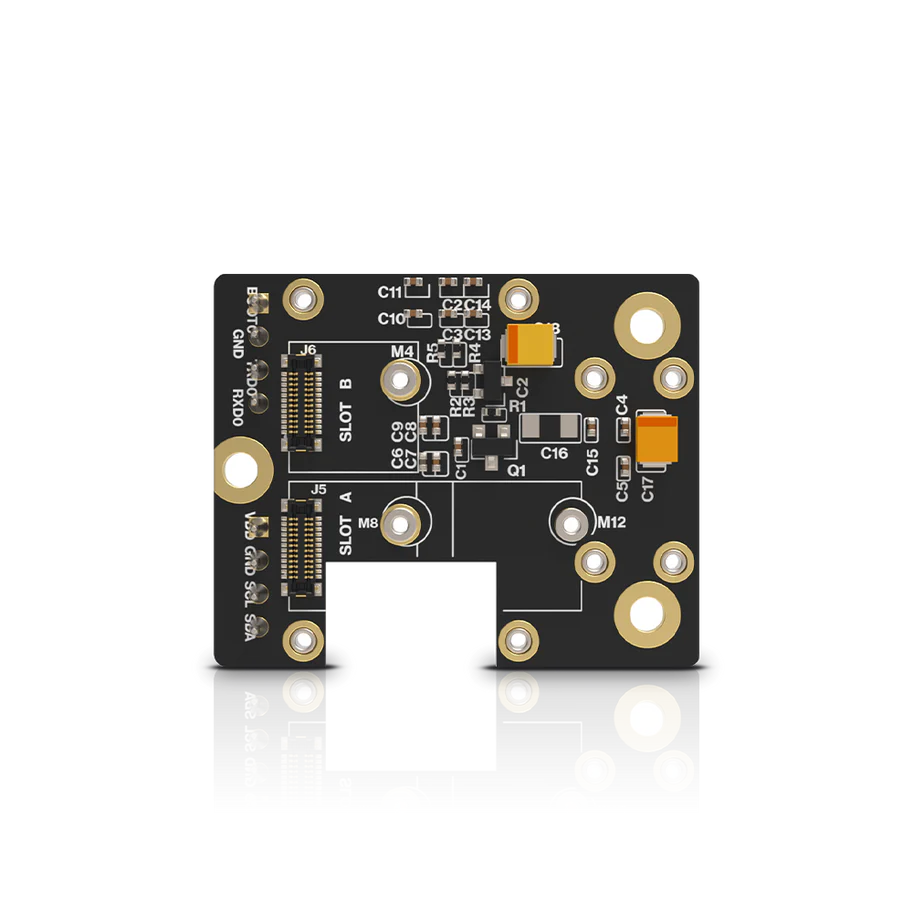 Auf der Platine sind ein Steckplatz für das WisBlock-Core-Modul, ein Steckplatz für das Stromversorgungsmodul sowie zwei Steckplätze (C und D) für WisBlock-Module vorgesehen. Das Core- und das Stromversorgungsmodul werden auf der Oberseite montiert, die WisBlock-Module auf der Unterseite. Die Verbindung erfolgt über schnelle Platine-zu-Platine-Steckverbinder; zusätzlich werden die Module mit Schrauben fixiert. Das erhöht die Betriebssicherheit und unterstützt eine stabile Signalübertragung – auch bei Vibrationen oder in raueren Umgebungen.
