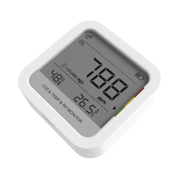 Der Qingping CO₂ & Temp & RH Monitor ist ein hochwertiges Überwachungsgerät für die Raumluftqualität. Der Sensor hat einen NDIR-CO₂-Sensor von Sensirion misst das Gerät zuverlässig CO₂-Konzentrationen im Bereich von 400 bis 9999 ppm. Bei erhöhtem CO₂-Gehalt wird über eine leicht verständliche Farbanzeige (Grün, Gelb, Rot) visuell gewarnt – ideal für Räume mit vielen Personen wie Klassenzimmer, Büros oder Restaurants.